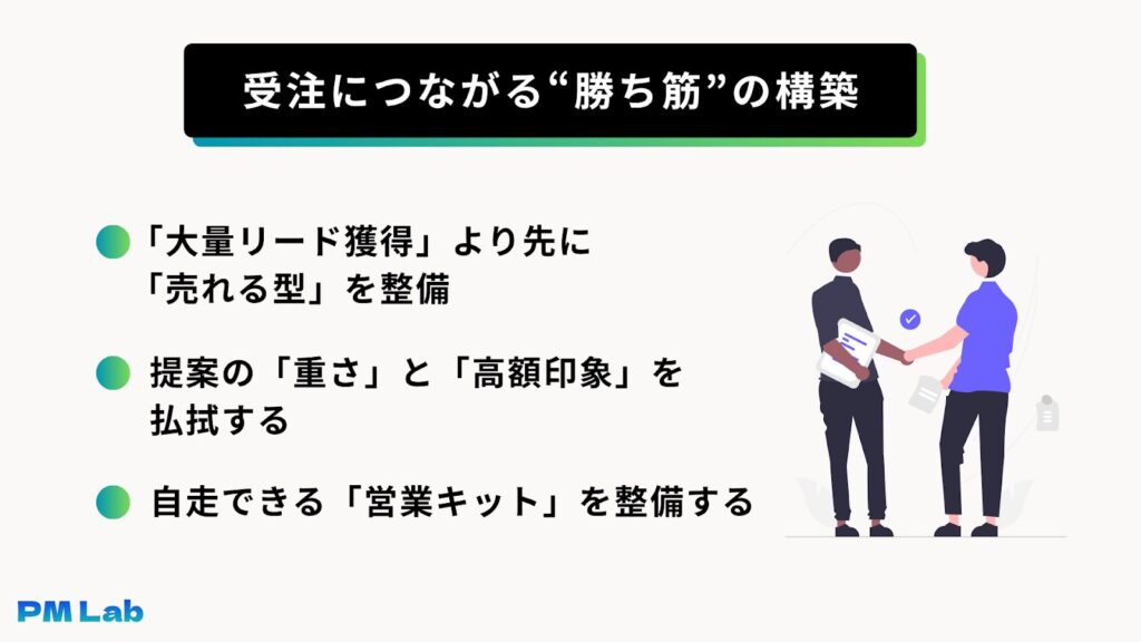 「大量リード獲得」を狙う前に、受注に近づくための「売れる型」を整備すること。これが最短ルートです。