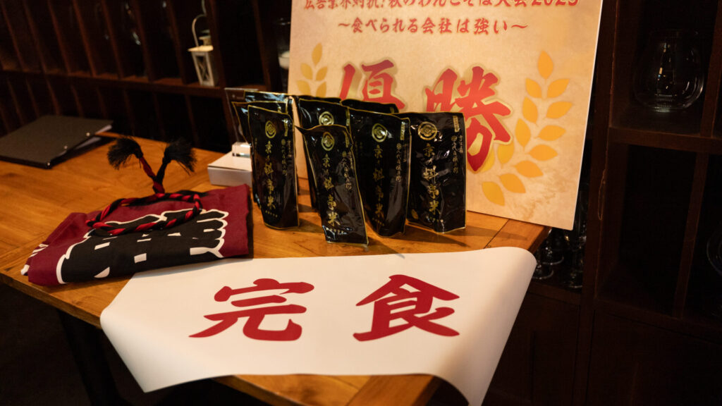 rayout株式会社は2025年10月某日、『広告業界わんこそば大会2025~食べられる会社は強い~』を開催しました。8社が熱戦を繰り広げ、主催であるrayoutが優勝しました。