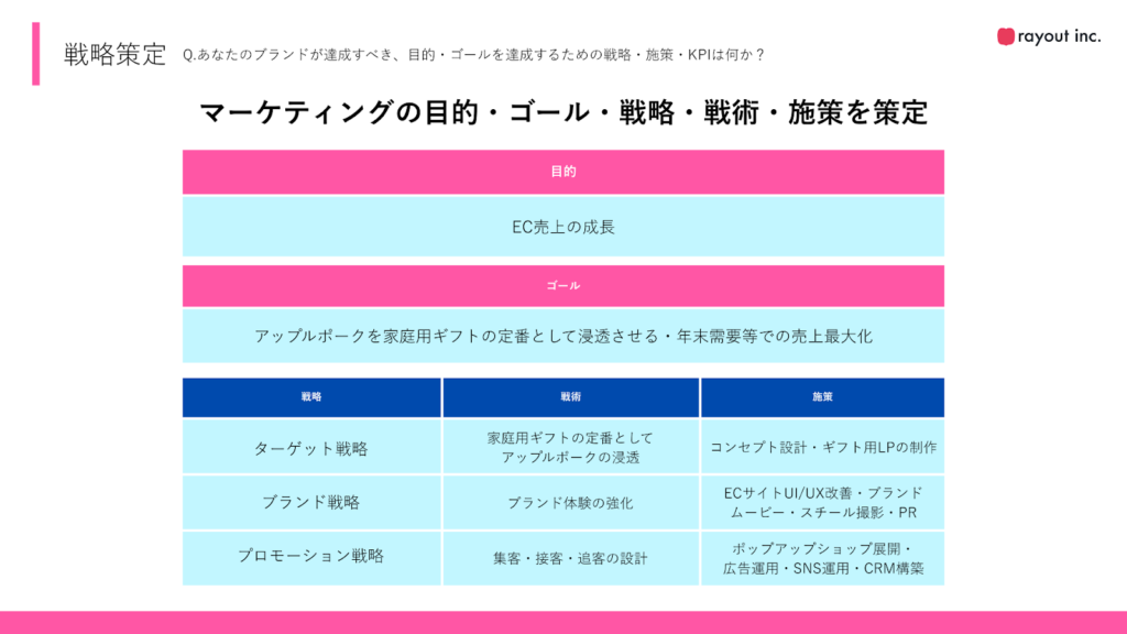 そこでまず、青森アップルポークを軸に据えるのかどうかをはっきりさせました。私たちは「まずはこれを売りたい」と伝えましたし、rayoutもそれに集中する形で提案を組み立ててくれました。