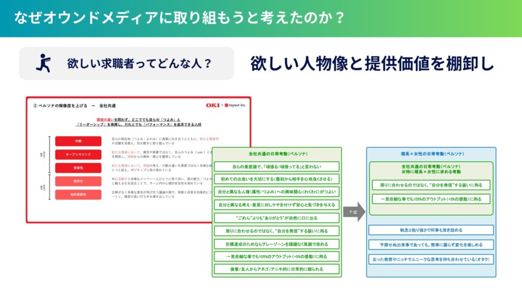 今回の施策ではその点を網羅することができれば、OKI様の魅力が外部にも内部にも循環していくと考えています。